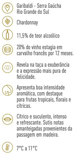 Vinhos que retratam o perfil do terroir gaúcho, com foco na produção de excelentes espumantes e brancos que evidenciam aromas florais e frutados, aliados à boa acidez e persistência que encantam os paladares mais exigentes.
