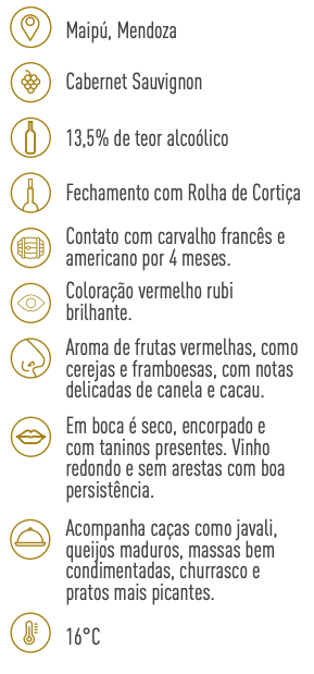 O melhor do terroir de Maipú é apresentado nesta linha premium. São vinhos encorpados, de cuidadosa elaboração, com passagens por carvalho e perfeitos para harmonizações gastronômicas sofisticadas.